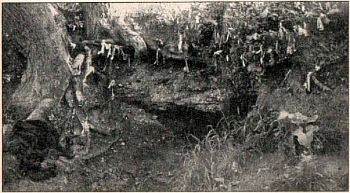 often leaving strips of cloth or rags tied to nearby bushes and trees -